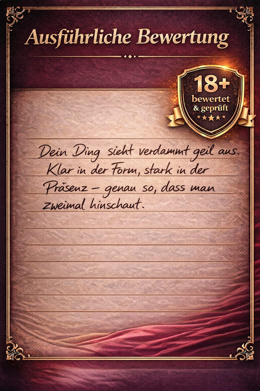 Wir bieten dir eine souveräne online Schwanzbewertung. Sende uns ein Snapvideo und erhalte ein offizielles drei seitiges Schwanz Zertifikat von milf & gilf.